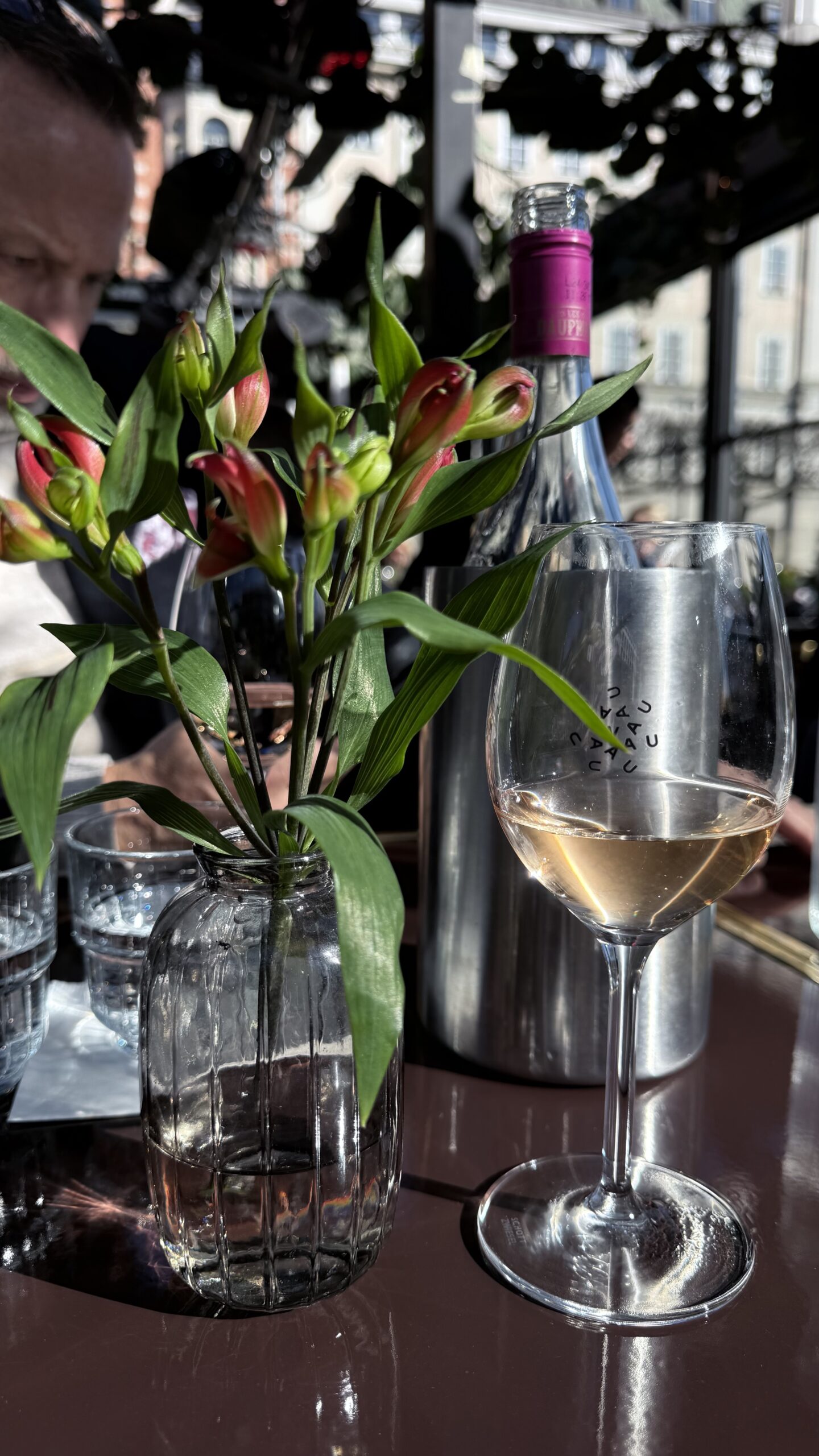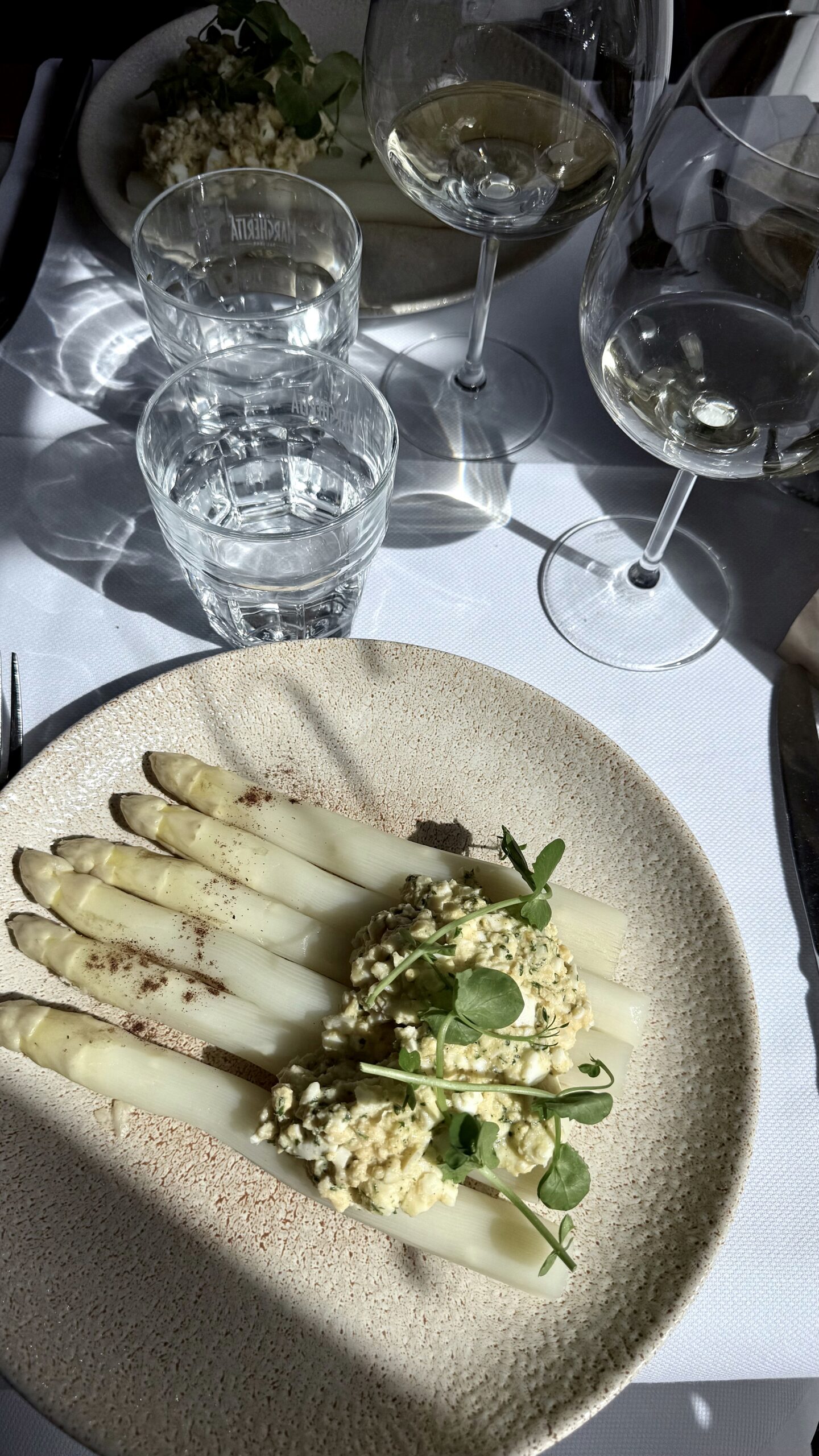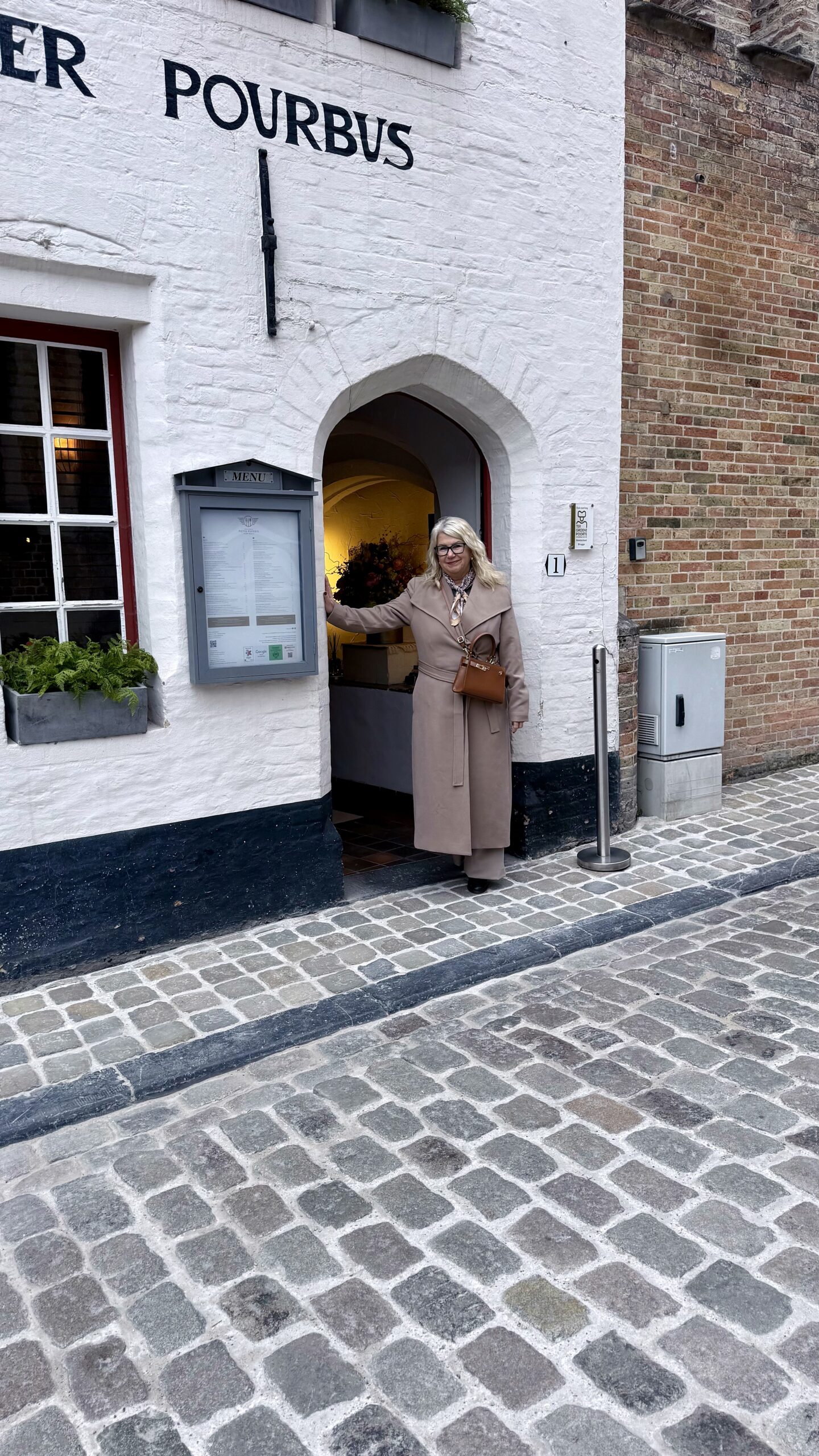 Fredag morgon gick vi upp 03.30 ( det är den värsta tiden jag vet) och åkte mot Arlanda. Flyget gick 06, mot Köpenhamn, det kunde ju stämma temperaturmässigt, men det var bara en mellanlandning. Nästa flyg gick till Bryssel, hmmm Bryssel jo det kunde ju också stämma temperaturmässigt, men när vi kom fram, skulle vi ta tåget mot den lilla staden Brügge som jag inte visste fanns. En och en halv timme tåg tågresan, men vilka fina tåg, stora, mycket platser och alla tågen går i tid. Allt gick supersmidigt, så vi var framme innan lunch. Vi klev av tåget och gick med våra väskor, in i den sötaste av städer, kullerstensgator och bara en massa gamla byggnader överallt. Hotellet vi skulle bo på låg väldigt centralt, så vi lämnade in väskorna där, och fick tips på en bra lunchrestaurang. Att bara slå sig ner där det sitter mycket folk, är ju oftast en tursitfälla, så vi tog tacksamt emot tipset. Så bara 100 meter bort fanns den söta lilla restaurangen, där det bara var inhemska och vi. Vit sparris verkar just nu vara en rätt som är omåttligt populär, så vi tog in en hel rätt med vit sparris, supergott.
