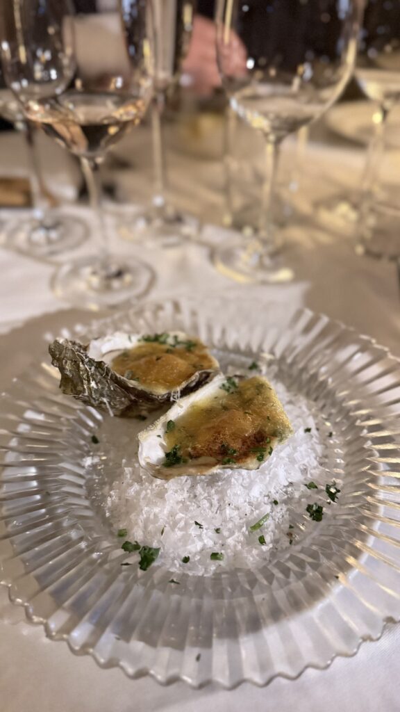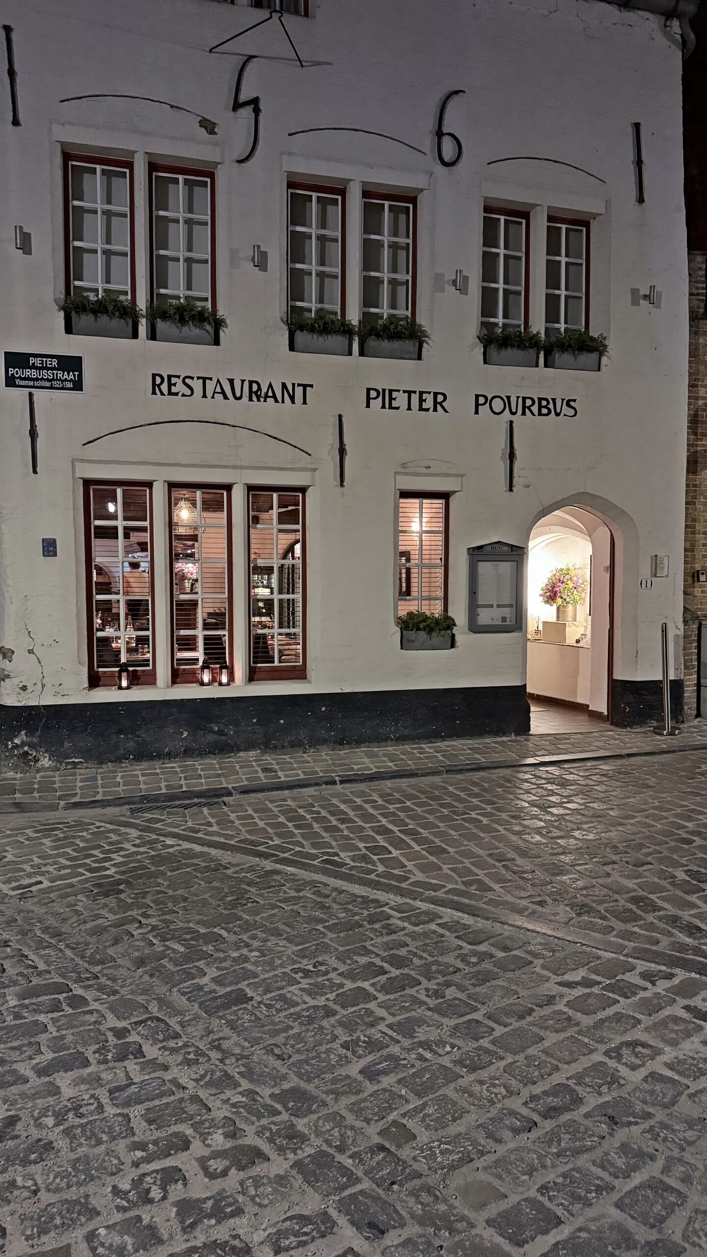 P hade bokat bord tidigt på kvällen, eftersom vi nog var trötta, och den restaurangen, låg inte heller långt bort, men på en bakgata där inga turister var. Här serverades också sparris, men vi valde gratinerade ostron, samt kött. Väldigt fint serverat och gott. När vi ätit strosade vi runt lite till innan båda var så trötta, att vi kände att nu var vi tvungna att sova. När vi kom till rummet, hade de varit inne och gjort i ordning för kvällen. Dragit för gardinerna, lagt fram en bok, samt lite fin belgisk choklad. Tror vi somnade innan 22.