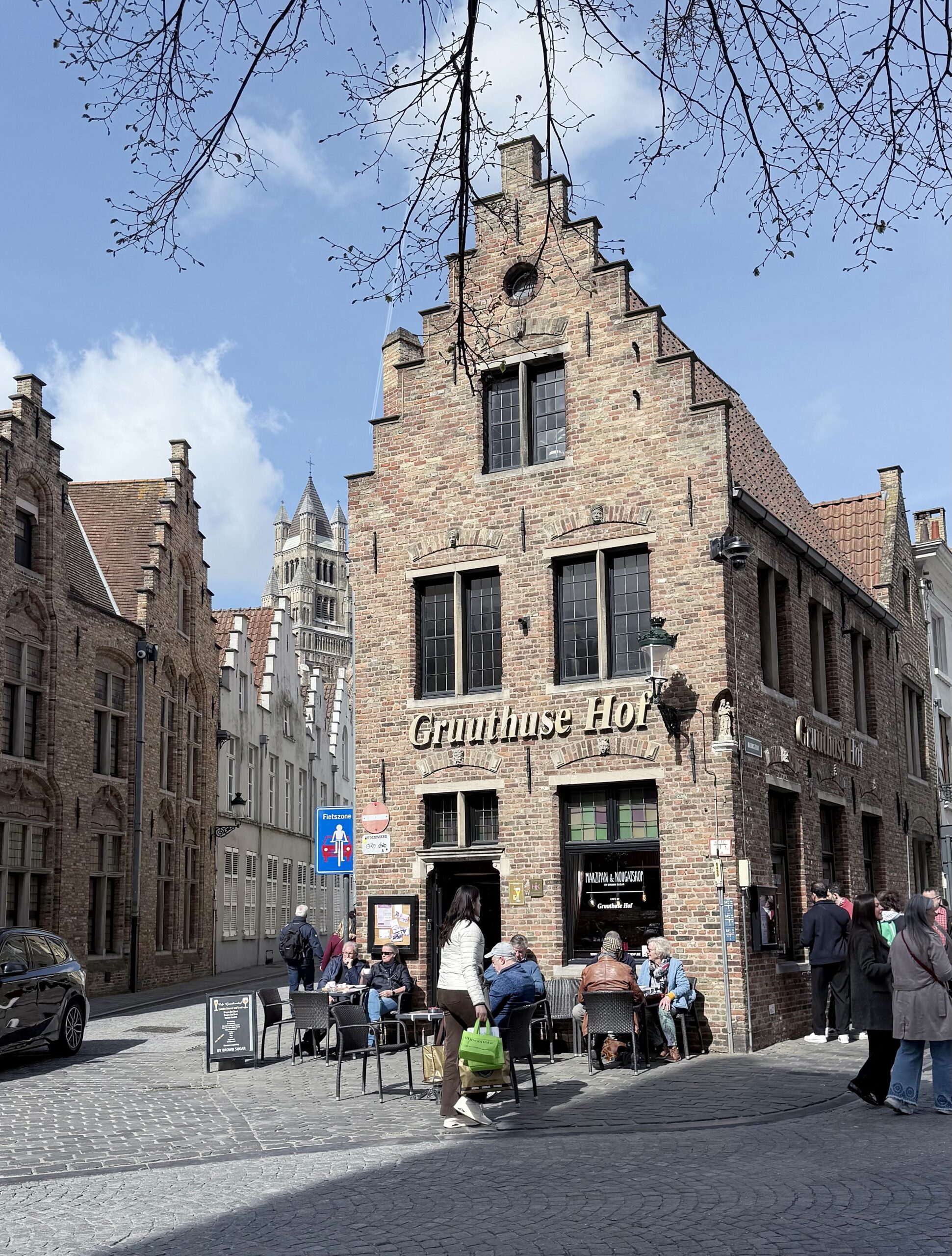 Sedan var det dags att checka in på vårt hotell och det var verkligen ett fint femstjärnigt hotell, med en fin restaurang, som fått omnämnande i guide Michelin, där skulle vi äta nästa kväll. Rummet var väldigt fint, med en fransk balkong. Vi var så trötta ( båda har varit sjuka) så vi var tvungna att sova lite middag, innan vi begav oss ut i den lilla staden Brügge.