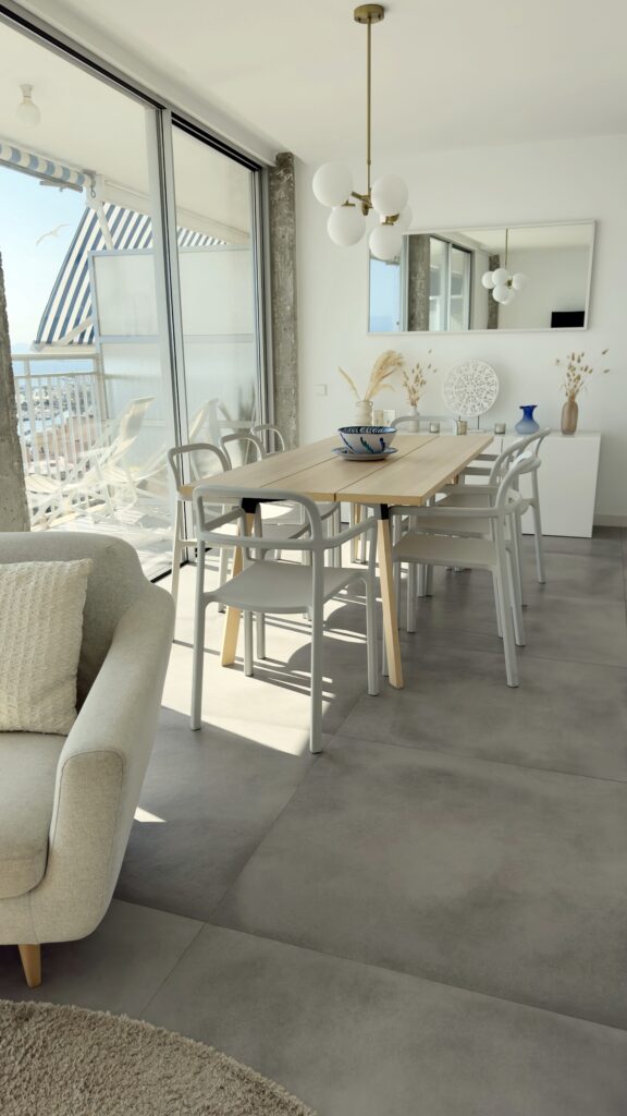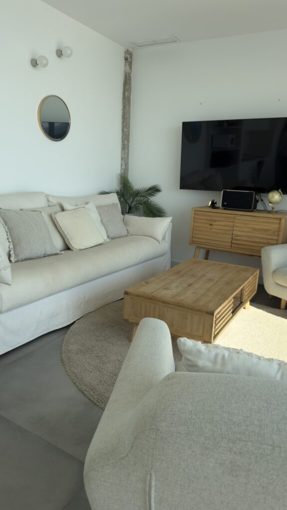 När vi tröttnat på att gå runt i värmen, tog vi bussen/bilen vidare till Santa Pola, där vi hyrt en ljus och fräsch lägenhet med tre sovrum, två badrum och balkong med havsutsikt. Bara några steg till stranden – och vattnet var ljuvligt, minst 25 grader! Efter ett dopp somnade nog alla en stund i sanden.