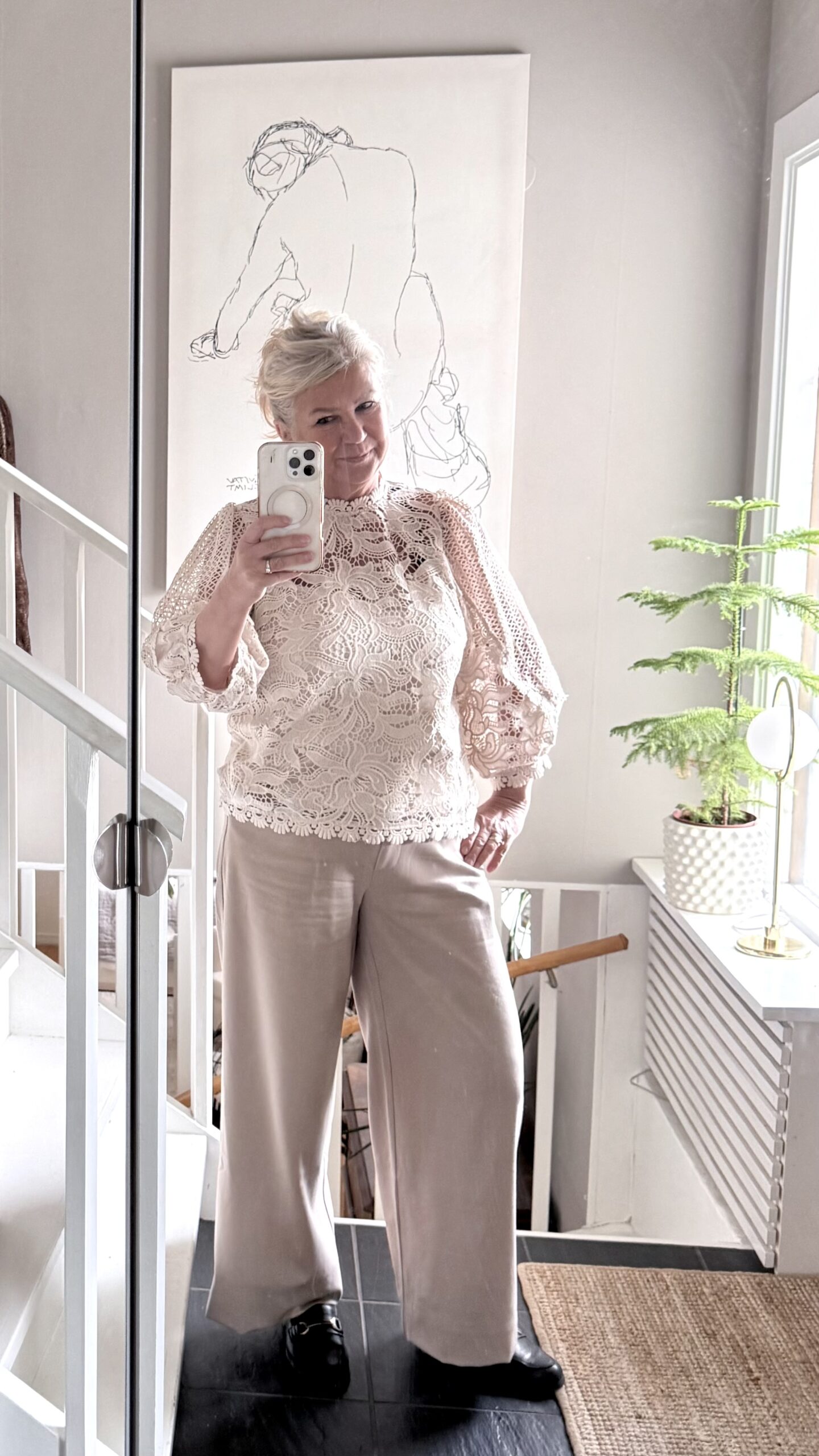 Min kostym hittar ni här, spetsblus här min kjol liknande här, jeans hängselbyxor här
