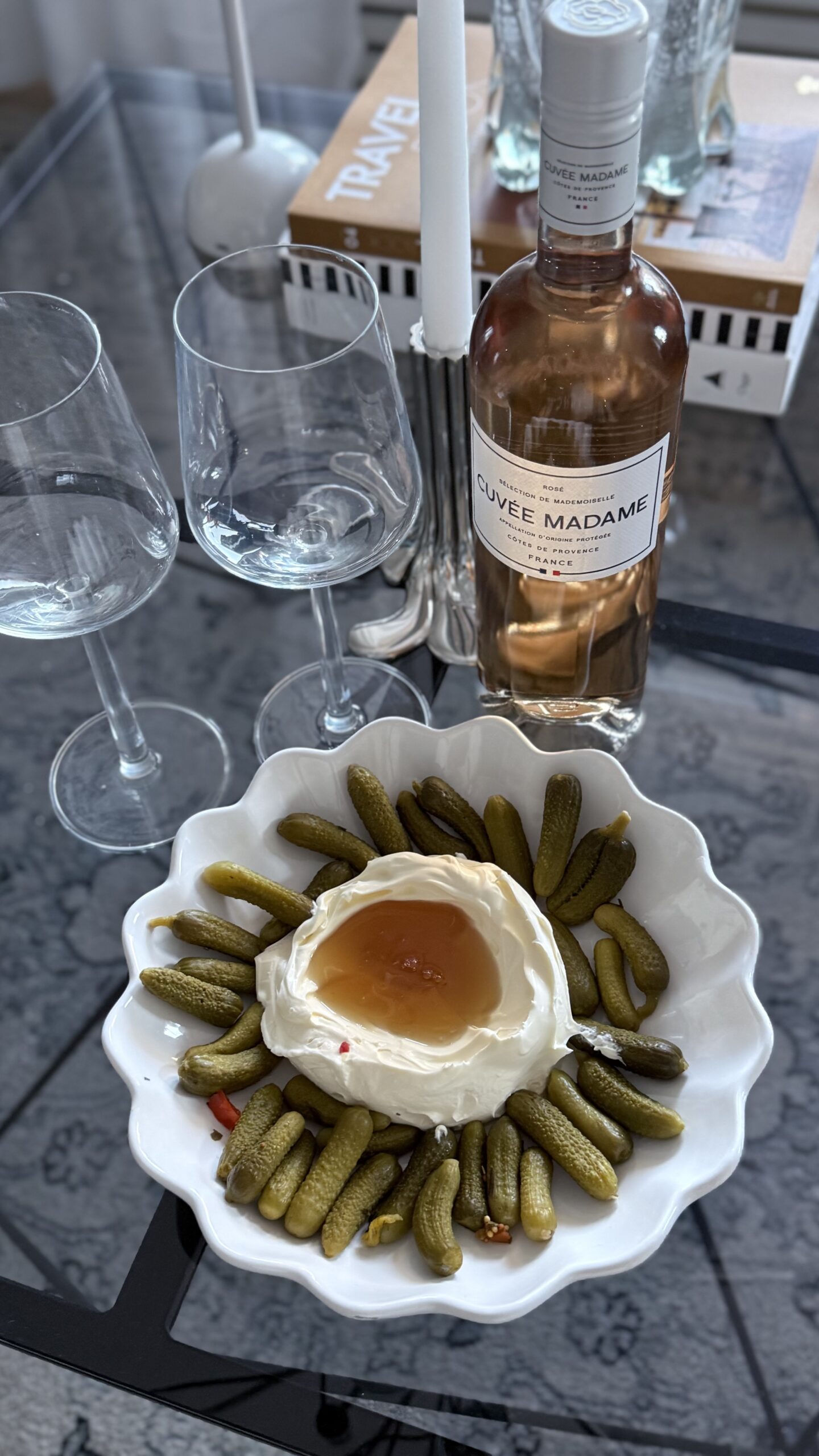 Hade endast en ledig dag förra veckan och fick lite gjort hemma, kunde klippa ner allt torrt, så det nya kan få chansen att komma upp. Plymspirea, och allt elefantgräs, fick med en del gamla löv också. Riktigt skönt. När P kom på kvällen gjorde jag det som jag blev bjuden på hos min dotter. Smetana, honung och smågurkor, så himla gott.